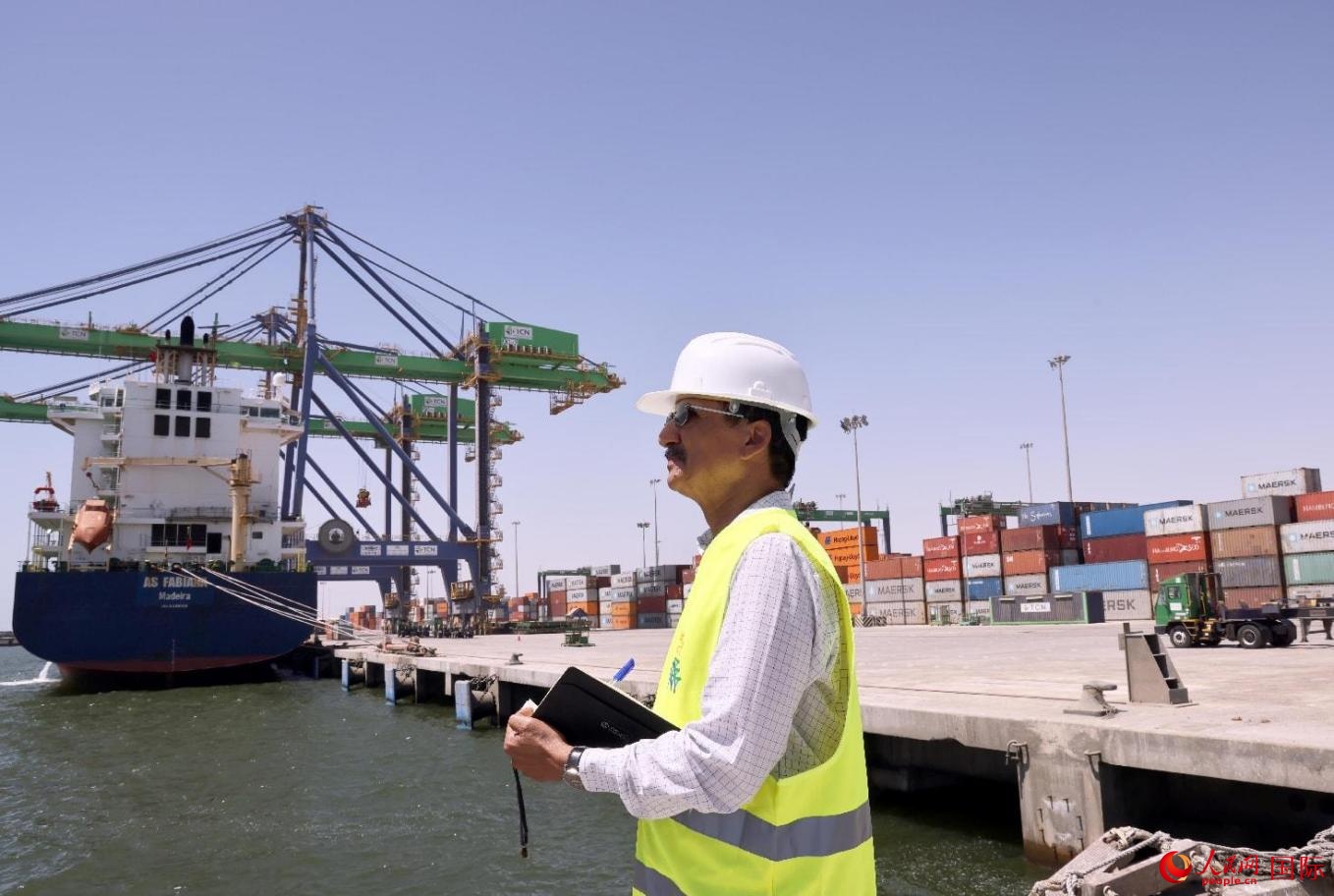 友誼港港務(wù)局局長技術(shù)顧問費(fèi)薩爾在現(xiàn)場巡視。人民網(wǎng)記者 管克江攝