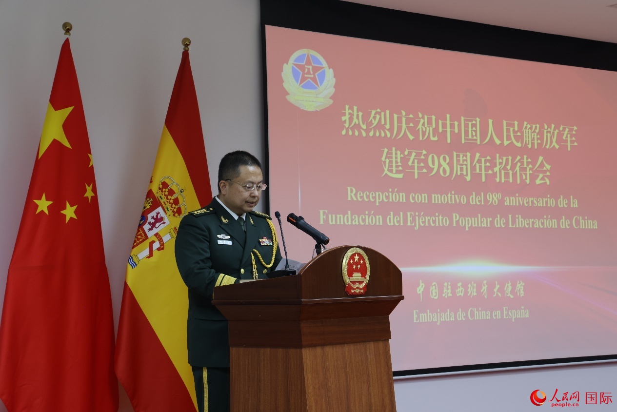 人民網(wǎng)馬德里7月18日電 (記者許海林、范劍青)當(dāng)?shù)貢r(shí)間7月17日,中國(guó)駐西班牙使館舉行慶祝中國(guó)人民解放軍建軍98周年招待會(huì),中國(guó)駐西班牙大使姚敬率使館全體外交官出席,國(guó)防武官黃大民大校主持并致辭。西王室、國(guó)防部、國(guó)民警衛(wèi)隊(duì)、西政府其他部門(mén)官員以及各國(guó)駐西使館武官等近250人參加。