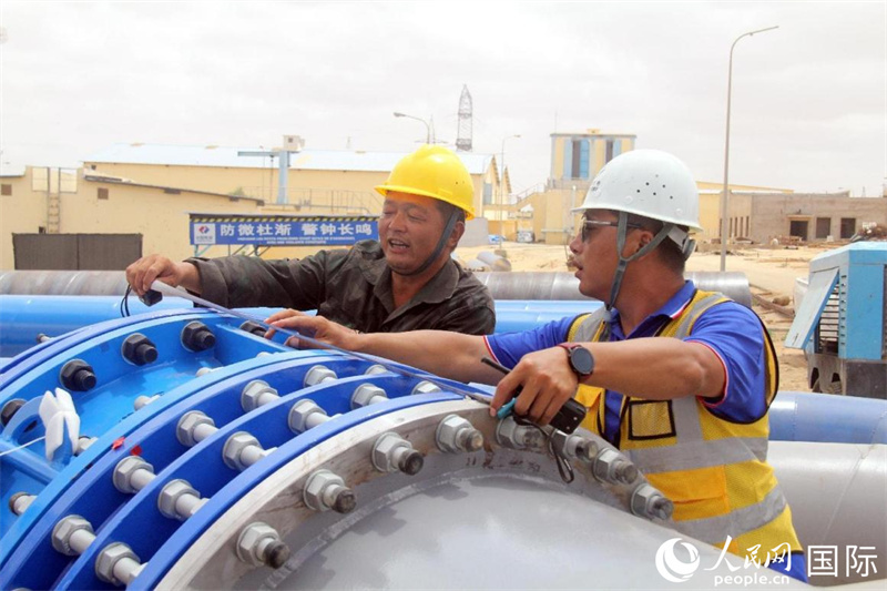 人民網(wǎng)努瓦克肖特7月20日電 (記者管克江、鄒松)從毛里塔尼亞首都努瓦克肖特驅(qū)車向南,沙漠戈壁間,每隔數(shù)百米就有一個圓形或方形的水泥墩,上面標記著“V419”“R165”等字樣?!斑@是長距離輸水管道的各類調(diào)節(jié)井室。努瓦克肖特和沿線居民的水源主要來自200公里外的塞內(nèi)加爾河,河水經(jīng)貝尼納吉水處理廠處理后一路輸送過來,根據(jù)沿線地形的變化需要設(shè)計不同的調(diào)節(jié)井室,以確保管道內(nèi)高壓水流平穩(wěn)運行?!迸阃稍L的中國電建毛里塔尼亞國別代表常云飛介紹。