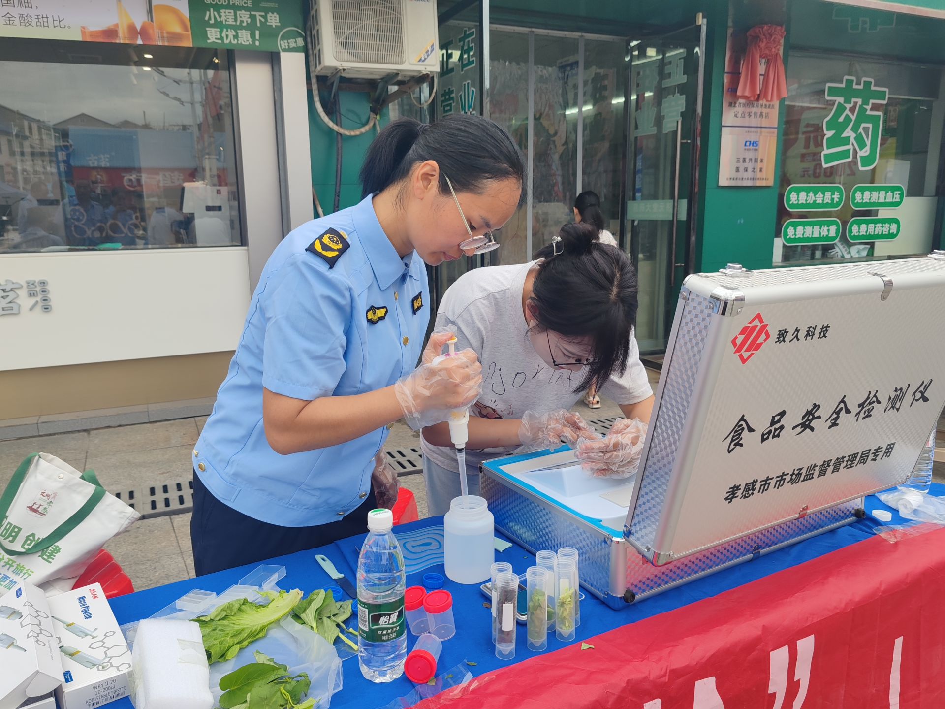 “你好,我自己買(mǎi)的菜,能幫我現(xiàn)場(chǎng)驗(yàn)一驗(yàn)嗎?”家住附近的王阿姨拎著剛買(mǎi)的蔬菜試探著詢問(wèn)。值守的市場(chǎng)監(jiān)管局工作人員熱情回應(yīng):“當(dāng)然可以!阿姨您‘點(diǎn)’哪樣,我們就‘檢’哪樣,現(xiàn)場(chǎng)出結(jié)果!”
