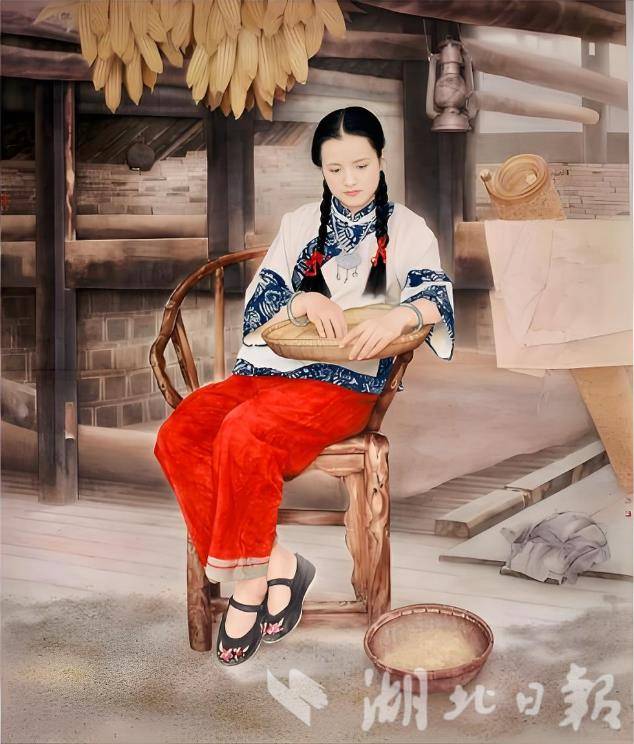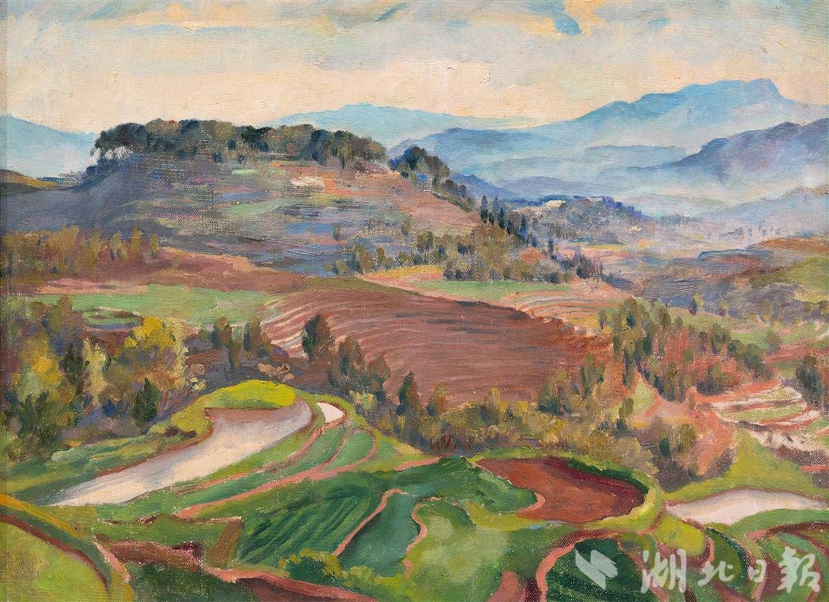 步入展廳,一幅幅美術(shù)史上的經(jīng)典作品及其描繪的美麗荊楚撲面而來。其中,湖北美術(shù)界前輩唐一禾創(chuàng)作的《江津?qū)懮弧访枥L了江津德感壩五十三梯的自然風(fēng)光,以細(xì)膩的筆觸勾勒出梯田如織、遠(yuǎn)山如黛的景象,層次分明、渾然天成。湯文選創(chuàng)作的《婆媳上冬學(xué)》表現(xiàn)婆媳二人在一個(gè)風(fēng)雪交加的傍晚相互攙扶趕去學(xué)文化的場(chǎng)景。李乃蔚《銀鎖》是深入鄂西農(nóng)村生活創(chuàng)作的佳作,描繪佩戴銀鎖的土家族少女形象,將中國(guó)畫寫實(shí)技巧推向新高度。此外,王曉愚作品《世紀(jì)三峽》、曹丹作品《陽(yáng)光下的大橋澆筑工》等全國(guó)美展大獎(jiǎng)作品也集中展示。
