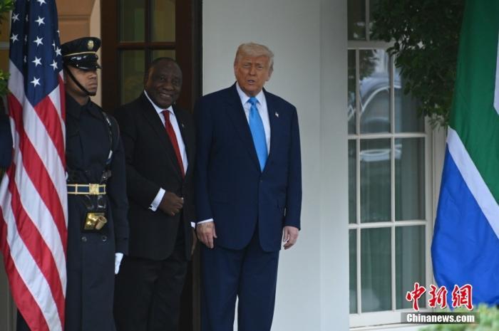 當?shù)貢r間5月21日,華盛頓,美國總統(tǒng)特朗普與南非總統(tǒng)拉馬福薩在白宮舉行會晤。中新社記者 陳孟統(tǒng) 攝