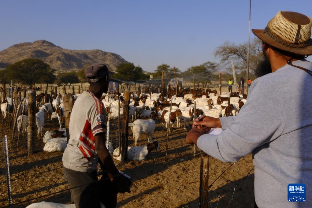 7月26日,在納米比亞烏薩科斯,“希望農(nóng)場”項目工作人員查看牲畜情況并進行登記。新華社記者 林晶 攝