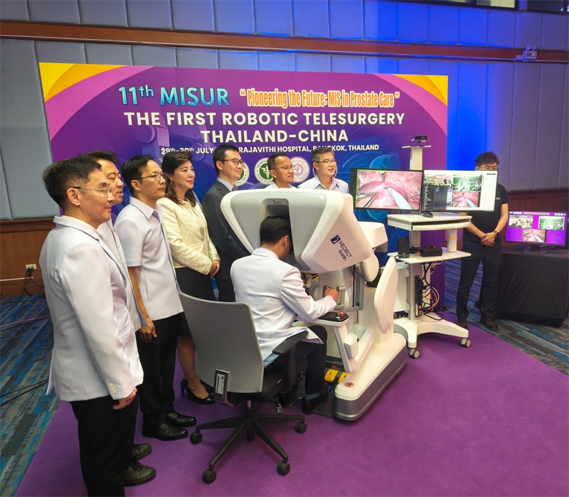 泰國公共衛(wèi)生司司長塔威信博士表示,機器人輔助遠程手術(shù)已成為現(xiàn)代醫(yī)學(xué)技術(shù)的重要發(fā)展方向。醫(yī)生可遠程精確控制具備多自由度、抗手抖動能力的機械臂,在不直接接觸患者的情況下實施高復(fù)雜度微創(chuàng)手術(shù),極大提升了操作安全性與效率。這為緩解醫(yī)療資源均衡分配提供了新途徑——通過新一代通信技術(shù)與手術(shù)機器人技術(shù)結(jié)合,實現(xiàn)跨地域手術(shù)治療,有助于縮小地區(qū)之間的醫(yī)療差距,讓更多的人享受到優(yōu)質(zhì)醫(yī)療服務(wù),為患者帶來更多的希望。