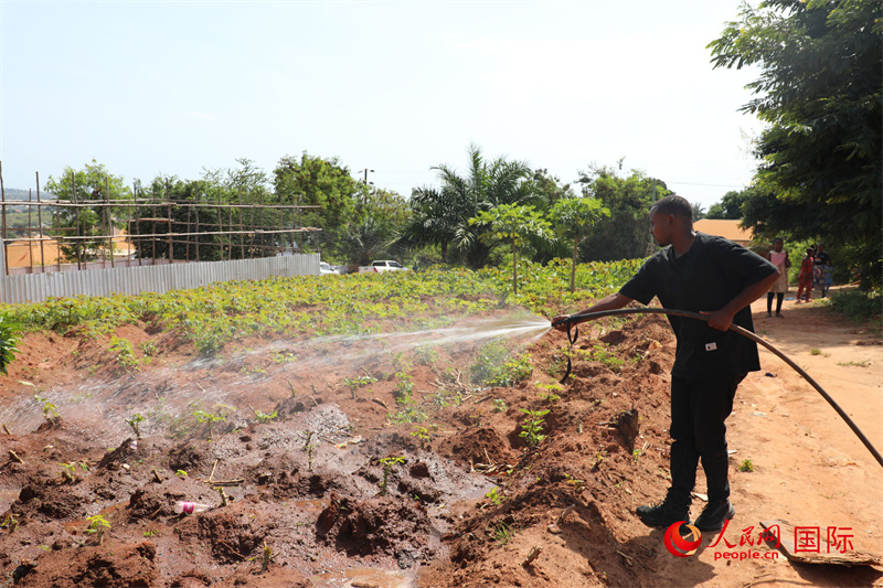 家住在基夫魯?shù)貐^(qū)的托比亞西·曼戈萊正在農(nóng)場(chǎng)灌溉。人民網(wǎng)記者 沈小曉攝