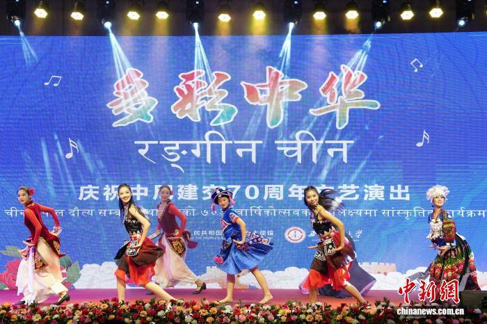 8月1日,中國(guó)駐尼泊爾大使館在尼首都加德滿都舉行中尼建交70周年招待會(huì)。圖為慶祝中尼建交70周年主題文藝演出。中新社記者 崔楠 攝