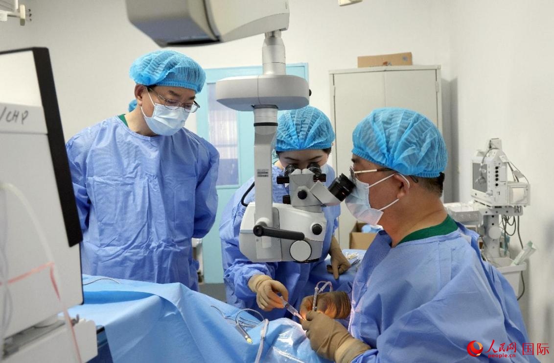 中國專家在為易卜拉欣做白內(nèi)障手術。人民網(wǎng)記者 管克江攝