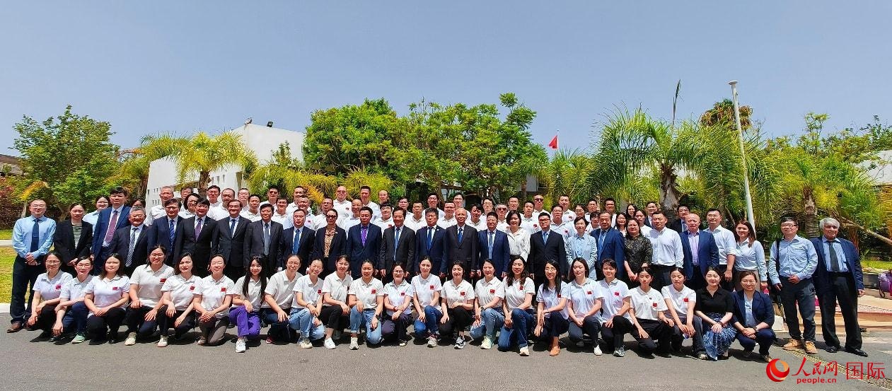 今年7月在摩洛哥首都拉巴特舉行的援摩中國醫(yī)療隊派遣50周年系列活動上,中摩嘉賓與中國醫(yī)療隊隊員代表合影。人民網(wǎng)記者 管克江攝