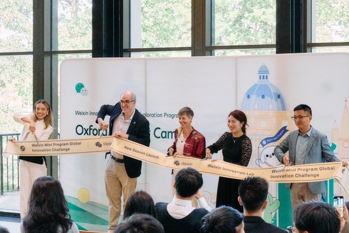 人民網(wǎng)倫敦8月6日電(徐量)當(dāng)?shù)貢r(shí)間8月5日,騰訊微信創(chuàng)新實(shí)驗(yàn)室全球探索計(jì)劃“牛津夏?!币约暗谒膶梦⑿判〕绦蛉騽?chuàng)新挑戰(zhàn)賽英國(guó)站在牛津大學(xué)正式啟動(dòng),來自中英教育界、文化界、媒體以及科技行業(yè)代表共五十余人出席開幕活動(dòng)。