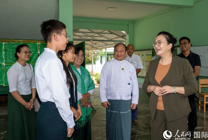 馬珈與內(nèi)比都第7中學(xué)學(xué)生交流。人民網(wǎng)記者 謝佳君攝