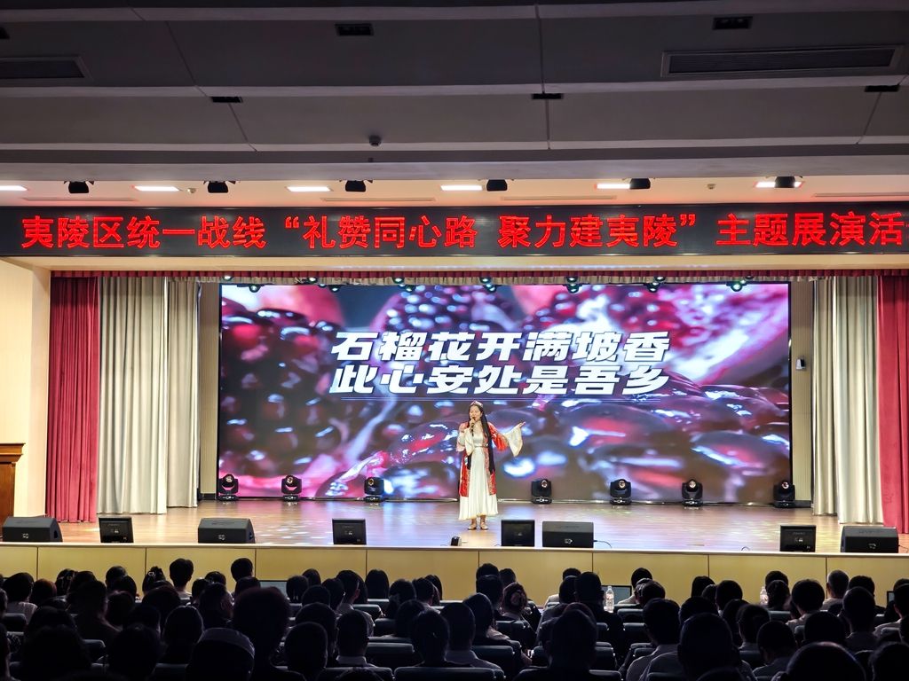 展演活動(dòng)分初心啟征程、同心譜新篇、同行筑華章等三個(gè)篇章?;顒?dòng)在精彩的舞蹈表演《青春飛揚(yáng)》中拉開帷幕。區(qū)民革黨員演講《我驕傲,我是一名民革人》,字字彰顯“風(fēng)雨同舟”的初心,詩(shī)朗誦《難忘》、情景劇《激流夜航》等節(jié)目,帶大家回望抗戰(zhàn)時(shí)期的烽火歲月;政法系統(tǒng)帶來(lái)的詩(shī)朗誦《憲法,我向您宣誓》、農(nóng)工黨夷陵支部表演情景劇《走在春風(fēng)里》等節(jié)目,生動(dòng)展示了新時(shí)代統(tǒng)戰(zhàn)成員圍繞中心、服務(wù)大局,在各自領(lǐng)域建功立業(yè)的實(shí)踐風(fēng)采;演講《僑心報(bào)國(guó),花木傳情》《從建設(shè)者到見(jiàn)證者——三代三峽人的時(shí)代答卷》,情景劇《遇見(jiàn)瀑布 情歸夷陵》等節(jié)目呈現(xiàn)了夷陵統(tǒng)一戰(zhàn)線成員凝心聚力、攜手共創(chuàng)夷陵美好未來(lái)的堅(jiān)定決心與生動(dòng)實(shí)踐。