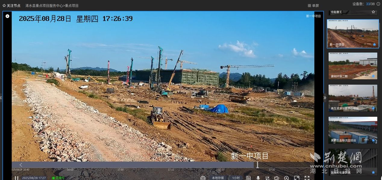 荊楚網(wǎng)(湖北日報網(wǎng))訊(通訊員 張海軍)8月28日,在浠水縣重點項目服務(wù)中心電子大屏上,實時呈現(xiàn)著一幅生動的建設(shè)圖景——多個重點項目工地的動態(tài)畫面交替切換:挖掘機鐵臂高舉,運輸車輛有序穿梭,工人們緊張忙碌……雖是遠程監(jiān)控,現(xiàn)場氣息卻撲面而來。
