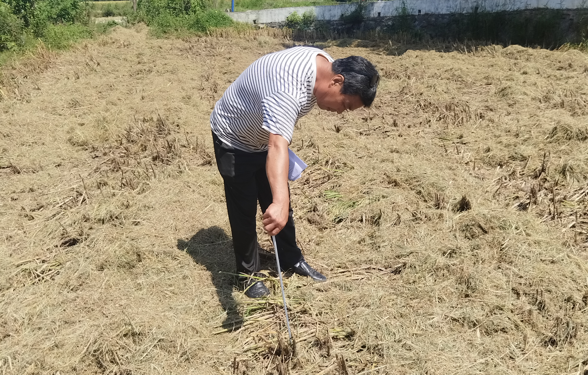 “師傅,停一下!您看這片區(qū)域的茬口明顯偏高,差不多有20公分了,不符合要求,請立即調(diào)整割臺高度!”一位駐村干部在現(xiàn)場及時叫停了一臺收割機,并拿出尺子現(xiàn)場測量,與農(nóng)機手溝通調(diào)整。