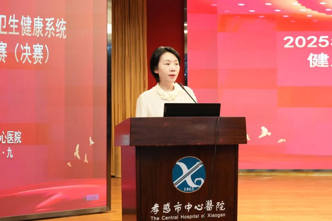 孝感市中心醫(yī)院副院長張海燕在健康科普大賽上進行致辭,經(jīng)過前期預賽,18位來自各醫(yī)聯(lián)體成員單位的參賽代表同臺競技,圍繞慢性病管理、急救常識、婦幼健康、老年健康等群眾關切的健康話題開展了科普宣講。
