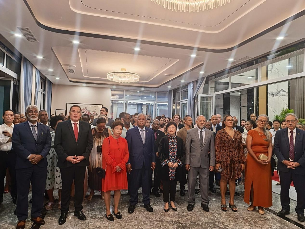 人民網(wǎng)內(nèi)羅畢9月17日電(記者黃煒鑫)維多利亞消息:中國駐塞舌爾大使館16日在塞舌爾首都維多利亞舉辦慶祝中華人民共和國成立76周年招待會(huì)。中國駐塞舌爾大使林楠,塞舌爾總統(tǒng)拉姆卡拉旺夫婦、副總統(tǒng)阿菲夫夫婦、議長曼西安納、外長拉德貢德及多位內(nèi)閣部長、外國駐塞使節(jié)、華僑華人和各界人士出席。