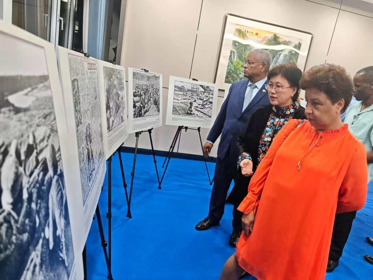 來賓現(xiàn)場參觀了抗戰(zhàn)勝利80周年主題圖片展。