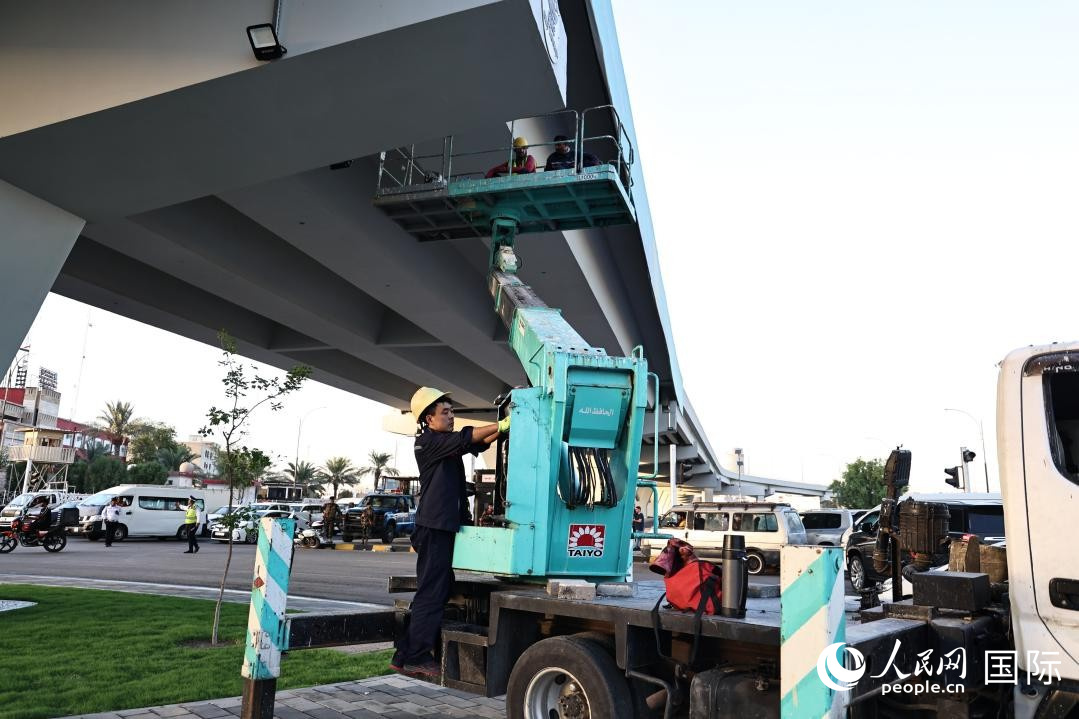項(xiàng)目工作人員在為通車做最后準(zhǔn)備。人民網(wǎng) 伊納斯·易卜拉欣攝