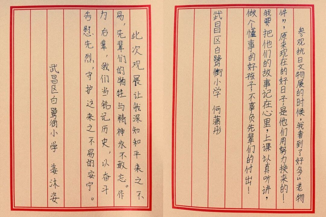 第一次這么近距離接觸抗戰(zhàn)文物,知道了很多抗戰(zhàn)英烈的故事,這些是我們在課本里接觸不到的。通過這節(jié)課我更加明白了,今天幸福生活的來之不易。以后要好好學習,報效祖國。