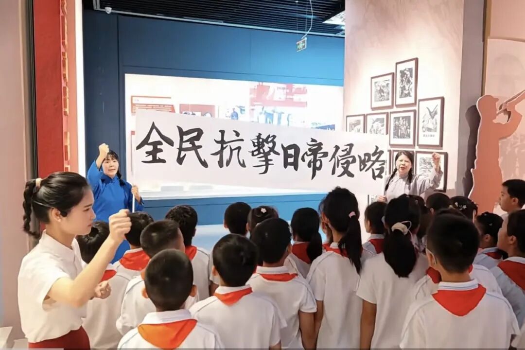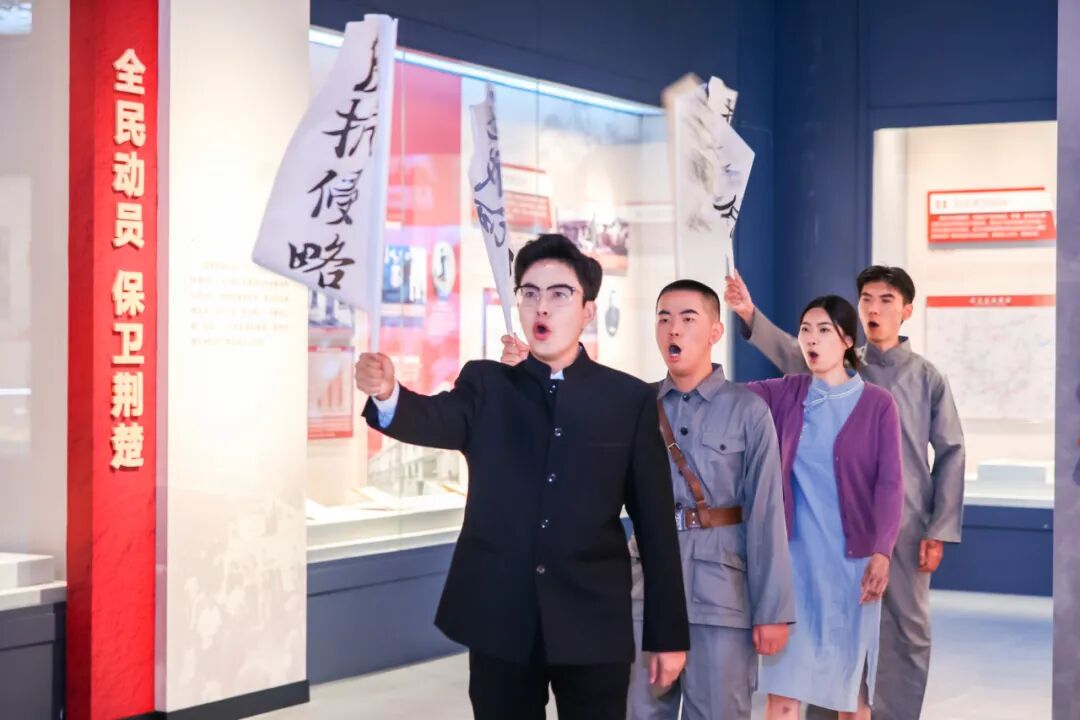 在“保衛(wèi)大武漢”場景前,同學們用童言童語宣講抗戰(zhàn)故事,齊聲高唱抗戰(zhàn)歌曲;在“跨越時空的對話”環(huán)節(jié)中,大中小學生深情誦讀紅色家書,寫信給保家衛(wèi)國的戰(zhàn)士們,表達內(nèi)心的無限崇敬;在打卡紅色專題展覽時,大家參與演繹情景劇,讓歷史可觸可感。