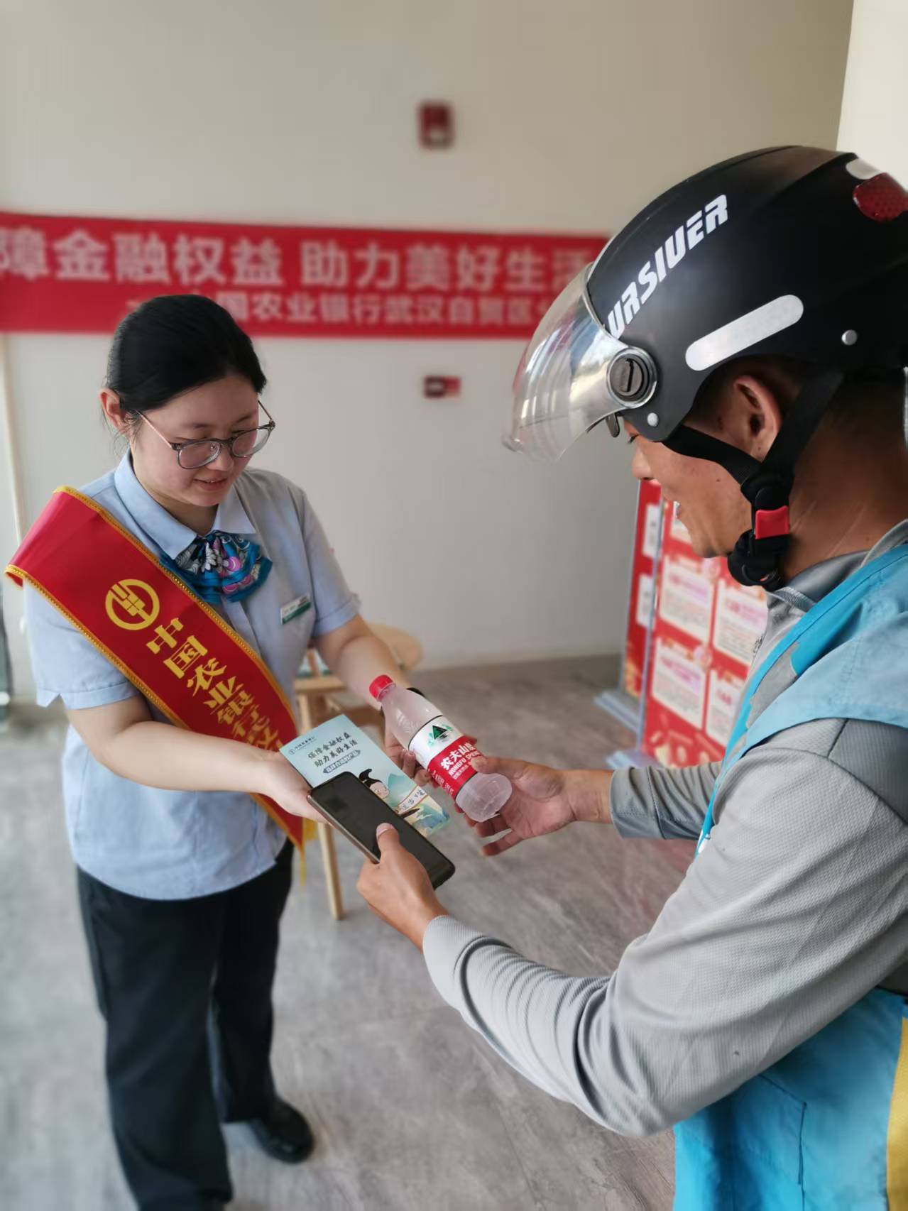 銀行工作人員圍繞個人信息保護、借貸風險防范、理財產品選購、電信網(wǎng)絡詐騙識別等核心消保內容,結合典型案例與宣傳折頁,針對市民關心的“如何辨別虛假金融廣告”“怎樣防范銀行卡盜刷”“選購理財如何匹配自身風險”等問題逐一細致答疑。同時,工作人員還貼心為市民送上冰鎮(zhèn)礦泉水,讓專業(yè)消保知識傳遞與暖心服務同步到位。