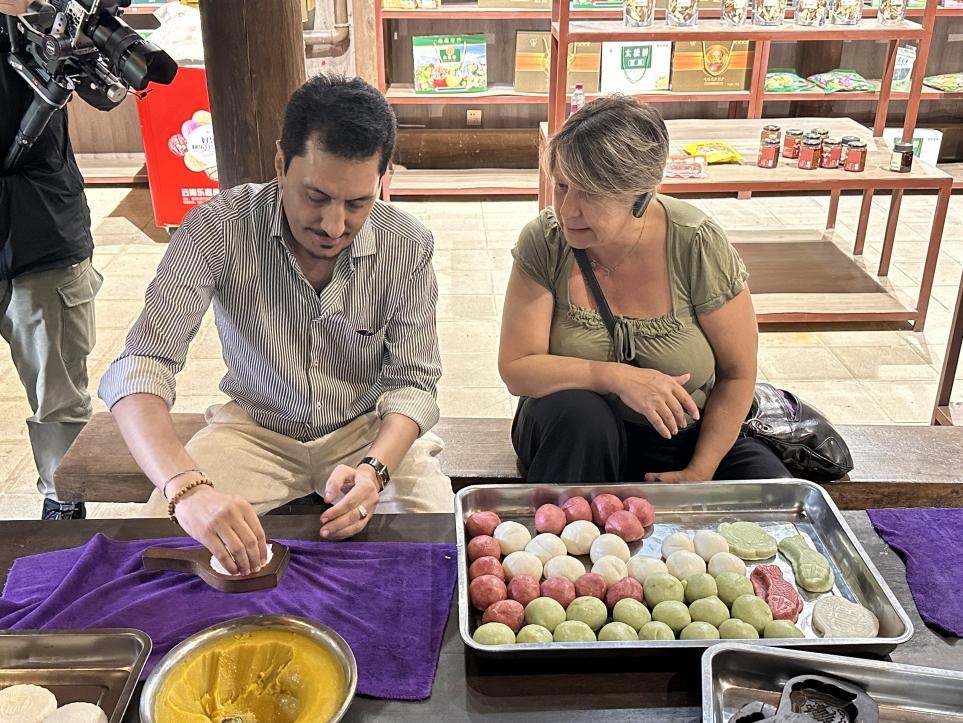 體驗(yàn)了制作工序后,費(fèi)薩爾·馬利克興奮地說(shuō):“這是我第一次見到這樣的制作工藝,讓我感到非常驚訝!做好的大米粑粑再加上一款口味獨(dú)特的辣醬,味道非常值得嘗試?!?/p>