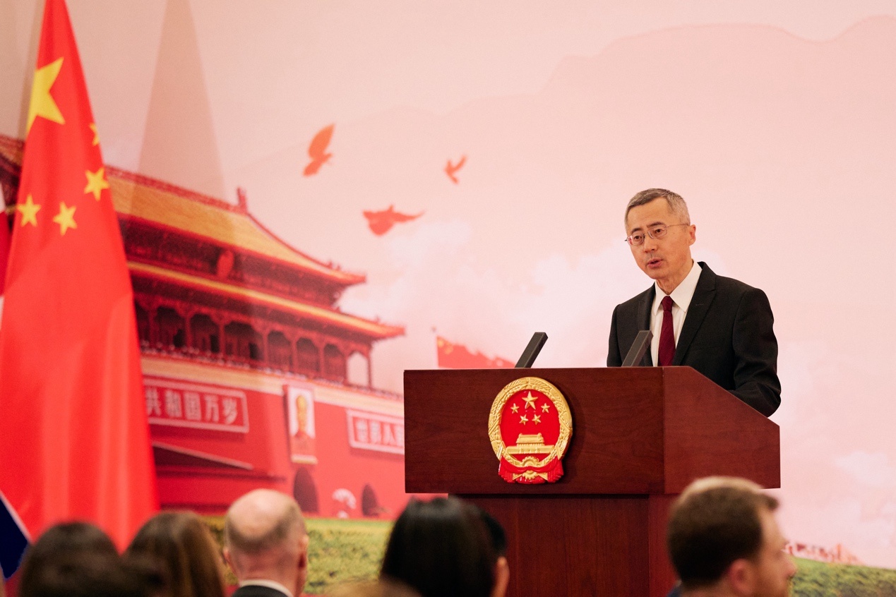 中國(guó)駐英國(guó)大使館臨時(shí)代辦王起發(fā)表致辭。楊浩鵬攝
