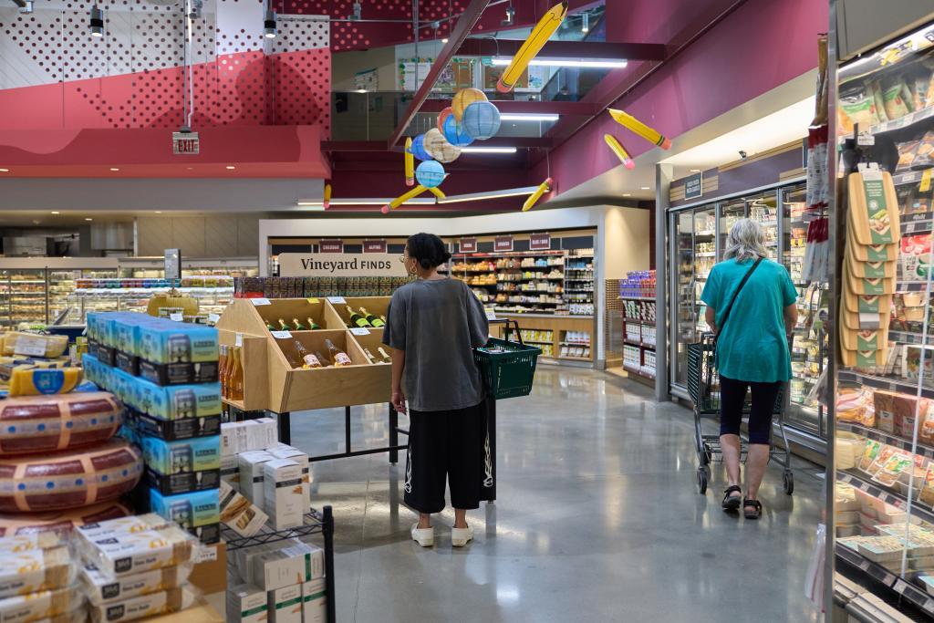 8月12日,顧客在美國(guó)洛杉磯的一家超市選購(gòu)日常用品。新華社/歐新