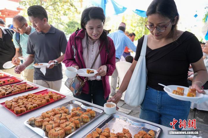 9月23日,尼泊爾中國(guó)文化中心在加德滿(mǎn)都舉行中秋主題活動(dòng),尼泊爾友人挑選多種口味的中式月餅?!≈行律缬浾?崔楠 攝