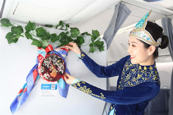 空乘人員擺放紀(jì)念復(fù)航陳設(shè)。南方航空供圖