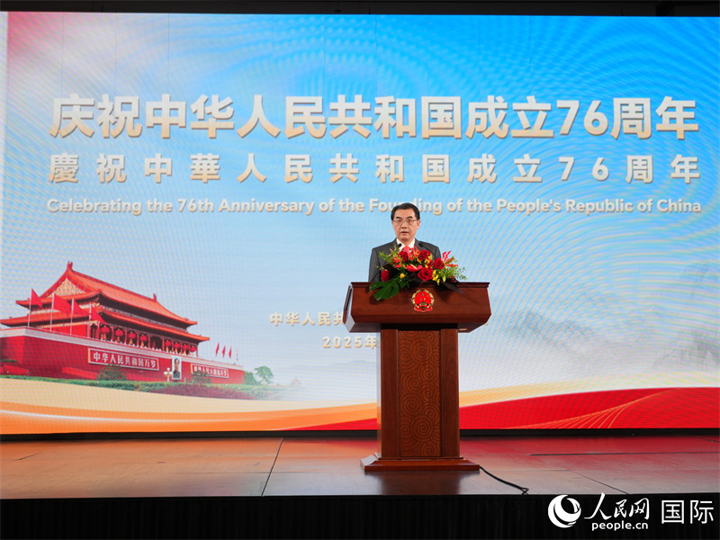 與會嘉賓祝賀新中國成立76周年。人民網(wǎng) 許可攝