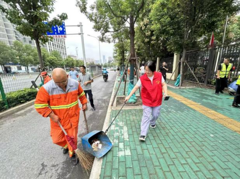 上午九點,東沙商業(yè)街區(qū)一派熱火朝天的勞動景象。行動中,各方分工明確、協(xié)同發(fā)力,形成“多元共治”的生動畫面。街道公管辦與綜合執(zhí)法中心統(tǒng)籌指揮,重點清運街角巷尾積存雜物和大件垃圾;社區(qū)工作人員和志愿者深入綠化帶,細致?lián)焓盁燁^、紙屑,全面擦洗公告欄、垃圾箱等“城市家具”,有效解決容器漫溢、綠化帶藏污等問題。多家商戶也紛紛主動加入,拿起掃帚、水桶,清洗門前路面、擦拭櫥窗、規(guī)范物品擺放,從“各掃門前雪”轉(zhuǎn)變?yōu)椤肮沧o大家園”。