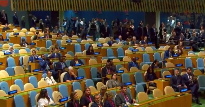 眾多聯(lián)合國(guó)會(huì)員國(guó)代表起身離席,代表席頓時(shí)空空蕩蕩