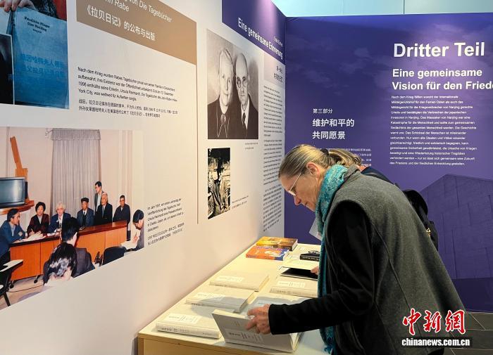 當(dāng)?shù)貢r(shí)間9月29日,“世界記憶 和平愿景——約翰·拉貝等德國人士見證的南京大屠殺”主題展覽在柏林中國文化中心開幕。圖為觀眾觀展。中新社記者 馬秀秀 攝