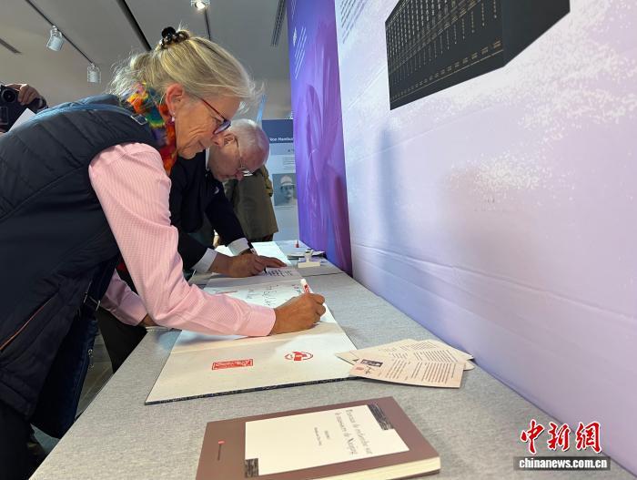當(dāng)?shù)貢r(shí)間9月29日,“世界記憶 和平愿景——約翰·拉貝等德國人士見證的南京大屠殺”主題展覽在柏林中國文化中心開幕。圖為觀眾觀展后留言。中新社記者 馬秀秀 攝