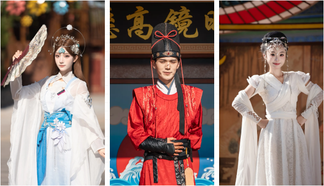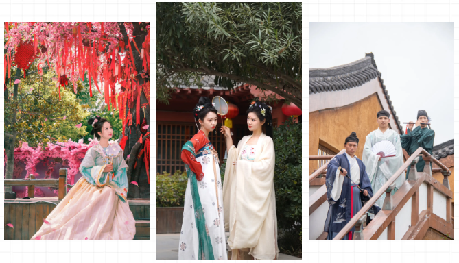 首先,清明上河園是宋式園區(qū),和古裝超級適配!所以,可以著漢服入園,另外,園區(qū)設有三處免費換裝點,分別位于迎賓門廣場、宋裝館、尚服局,都可以免費換裝,團扇、折扇也可以備一把哦~