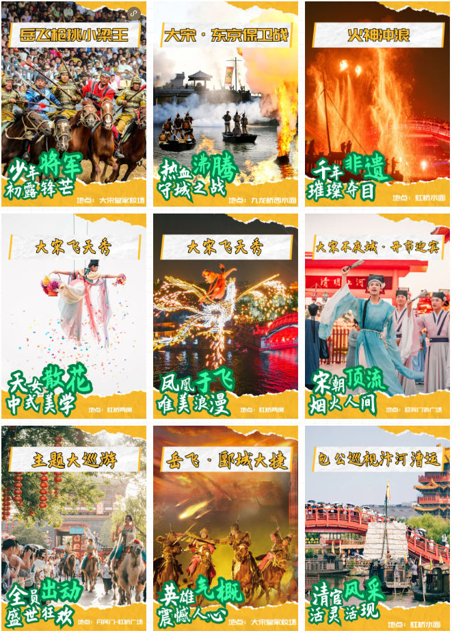 清明上河園——大型宋文化主題公園是國家文化產(chǎn)業(yè)示范基地、國家AAAAA級旅游景區(qū),以《清明上河圖》為靈感,還原北宋市井生活與宮廷娛樂,通過演藝活化宋代史與人物典故,是文化體驗與休閑娛樂的完美結合,獲得快樂的同時也會收獲深刻的歷史體驗。