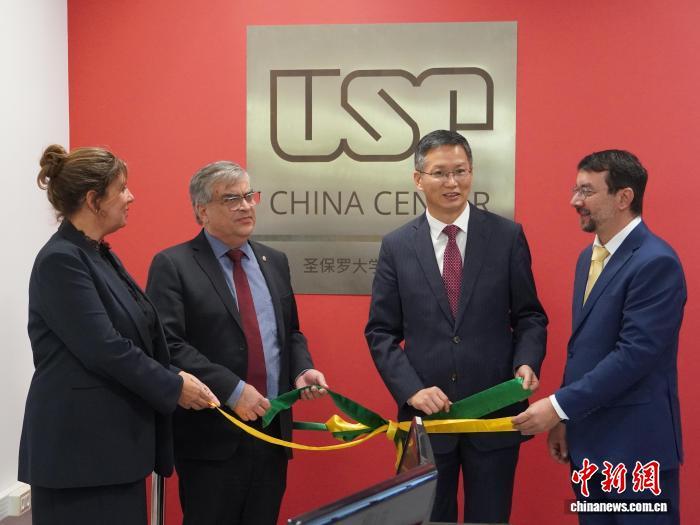當(dāng)?shù)貢r間3月21日,巴西圣保羅,巴西圣保羅大學(xué)中國中心成立揭牌儀式。記者林春茵攝