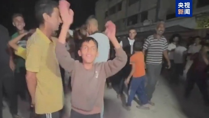 △哈馬斯提交對“20點計劃”的回應后,加沙民眾走上街頭進行慶祝
