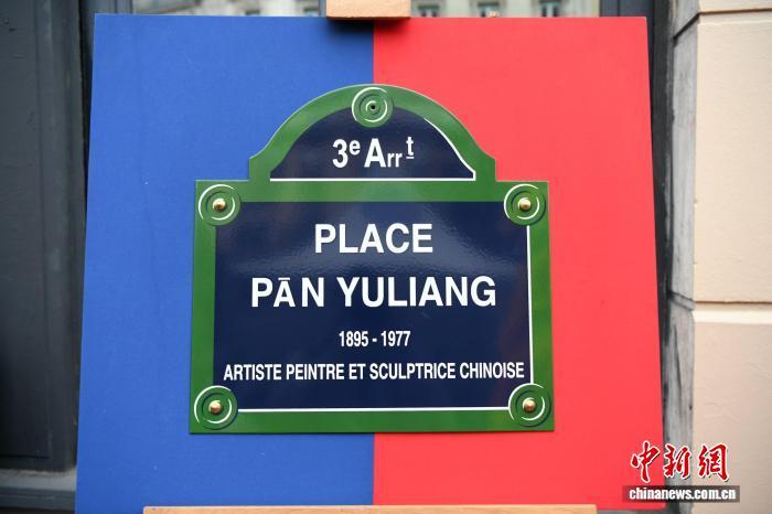 當?shù)貢r間10月6日,“潘玉良廣場”揭幕儀式在巴黎舉行。圖為當天揭幕的“潘玉良廣場”銘牌,特別注明她是中國女畫家和雕塑家。今年是潘玉良(1895-1977)誕辰130周年。中新社記者 李洋 攝