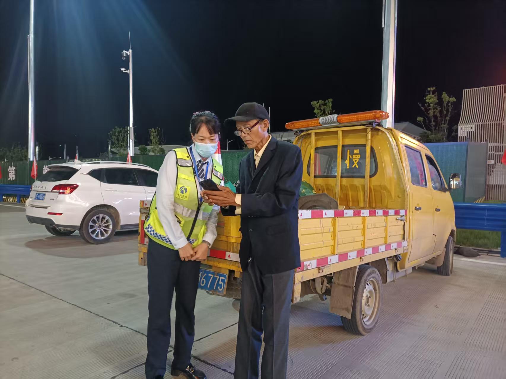 當(dāng)天凌晨2時(shí)許,一位老人茫然地站在孝感收費(fèi)站廣場上,神情低落,顯得不知所措。正在外場巡邏的收費(fèi)班長王燕玲發(fā)現(xiàn)了這一情況,便主動(dòng)上前詢問。