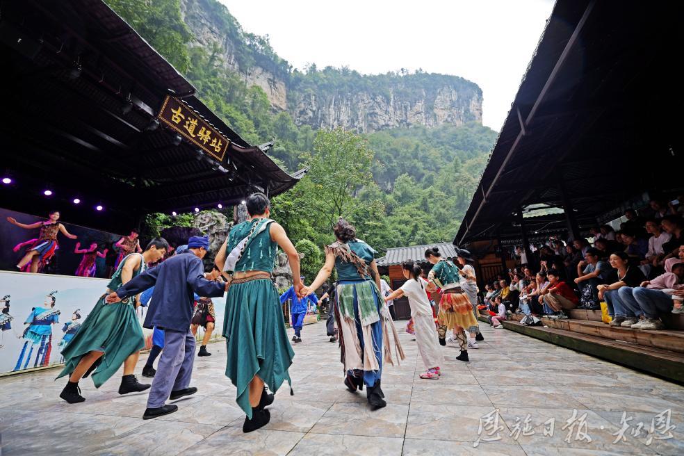 此外,“非遺鬧峽谷”,雙節(jié)間景區(qū)各處其豐富多彩的非遺文化活動為這趟自然之旅增添不少韻味。湖北省民族歌舞團的駐場演出、《地心之戀》實景劇、《鹽道古風》原生生態(tài)表演等,讓游客在領略自然奇觀的同時,也能深度體驗深厚的土家苗族文化與千年巴鹽古道歷史。山水與人文在此完美交融,締造出獨一無二的旅行記憶。