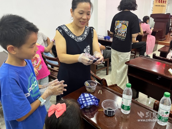 在動手體驗(yàn)環(huán)節(jié),孩子們興致勃勃地嘗試各種扎結(jié)方法,家長們在旁細(xì)心協(xié)助。經(jīng)過精心捆扎與浸染,當(dāng)一塊塊布料被緩緩展開,呈現(xiàn)出獨(dú)一無二的藍(lán)白紋樣時(shí),現(xiàn)場響起陣陣驚嘆?;顒硬粌H提升了孩子們的動手能力與專注力,更讓他們深切感受到傳統(tǒng)技藝的魅力與勞動的喜悅。