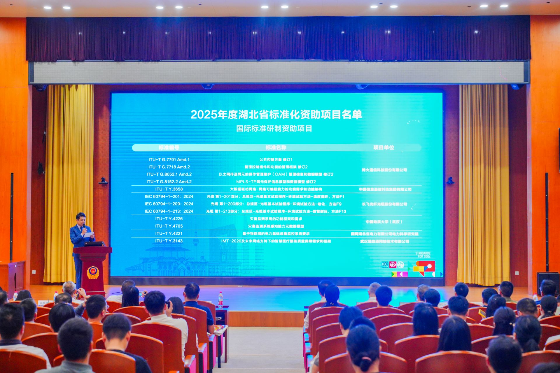 活動現(xiàn)場還公布了2025年度湖北省標(biāo)準(zhǔn)化資助項目名單,共有10項國際標(biāo)準(zhǔn)、25項國家標(biāo)準(zhǔn)、85項省級地方標(biāo)準(zhǔn)和25個省級專業(yè)標(biāo)準(zhǔn)化技術(shù)組織項目獲得資助,涵蓋高端制造、綠色能源、數(shù)字經(jīng)濟(jì)、公共服務(wù)等多個重點領(lǐng)域。