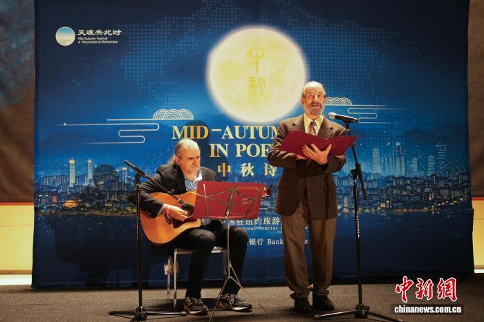 詩會以紐約市議員馬泰中英雙語朗誦的《靜夜思》開場。隨后,中美藝術(shù)家登臺,呈現(xiàn)了《望月懷遠(yuǎn)》《春江花月夜》《水調(diào)歌頭·明月幾時(shí)有》等中國古典詩篇,以及美國詩人柯克·拉森(Kirk Larsen)創(chuàng)作的現(xiàn)代詩《中秋豐收將至》。