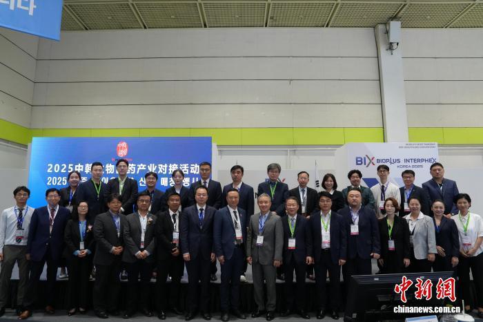 10月15日,“2025中韓生物醫(yī)藥產(chǎn)業(yè)對(duì)接活動(dòng)”在韓國國際生物醫(yī)藥展會(huì)期間于首爾舉辦。圖為活動(dòng)合影。中新網(wǎng)記者 劉旭 攝