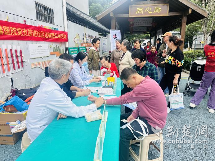 在另一角落,醫(yī)護(hù)人員耐心講解健康知識(shí),社??ㄞk理區(qū)的漢口銀行工作人員忙個(gè)不停,為居民免費(fèi)辦理社??ㄉ?jí)業(yè)務(wù)。