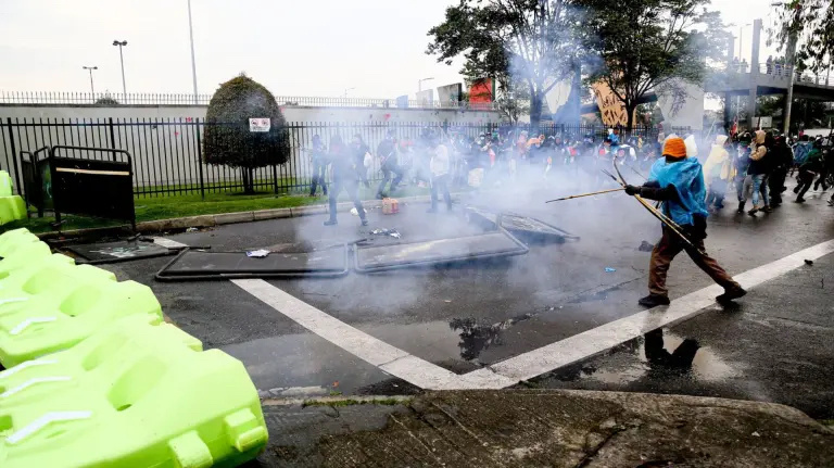 17日,美國駐哥倫比亞大使館外發(fā)生抗議游行,譴責(zé)美國支持以色列??棺h最終演變成一群蒙面人使用爆炸裝置、燃燒彈和弓箭等發(fā)動(dòng)襲擊。美國駐哥倫比亞大使館17日宣布暫停辦公一天。(總臺(tái)記者 鄧雪梅)
