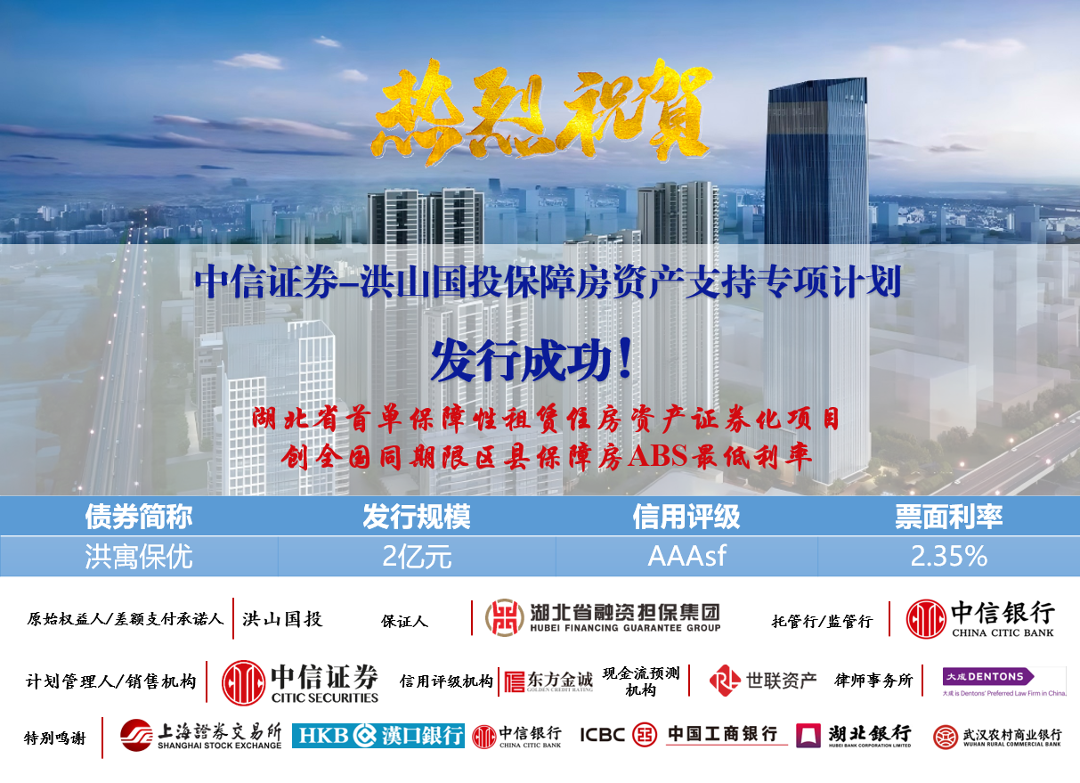 洪山國投保障房ABS的成功發(fā)行,既是公司叩開資本市場大門的“亮眼首秀”,更是洪山區(qū)屬國企在資產(chǎn)證券化領(lǐng)域突破前行的生動注腳。它不僅幫助企業(yè)優(yōu)化了資產(chǎn)負債結(jié)構(gòu)、逐步構(gòu)建起存量資產(chǎn)市場化運營能力,為企業(yè)經(jīng)營注入強勁活力,更為地方國企探索資產(chǎn)盤活路徑提供了可復(fù)制、可推廣的實踐樣本,為產(chǎn)業(yè)能級提升、經(jīng)濟高質(zhì)量發(fā)展注入源源不斷的動力,讓“國有資產(chǎn)證券化”的思路落地生根。