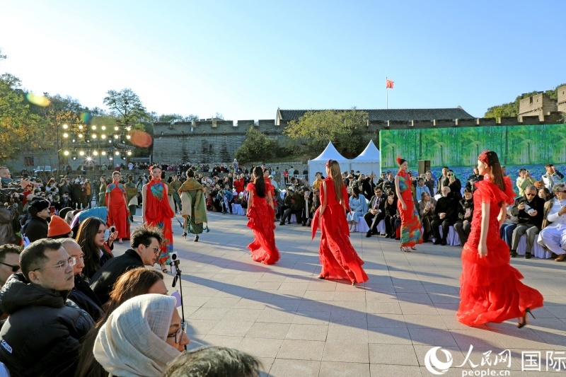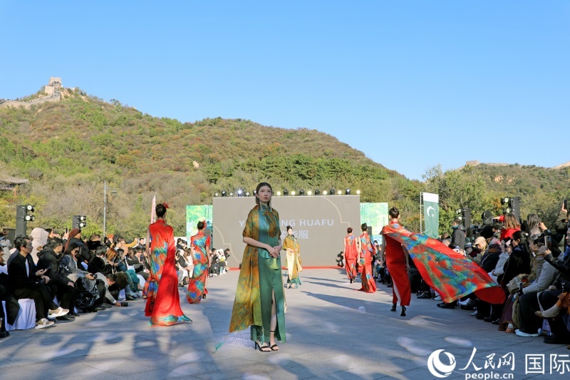 10月19日,由巴基斯坦駐華使館與中國國際文化傳播中心共同組織的中巴時裝秀在北京八達嶺長城舉行,中巴兩國官員、商界人士、媒體代表約200人出席活動。巴基斯坦設計師為本次活動設計打造了融合中國和巴基斯坦兩國時尚風格的系列服裝作品,由中巴兩國模特共同展示。巴基斯坦駐華大使卡里爾·哈什米在現(xiàn)場表示,今年恰逢巴基斯坦國家領導人首次參觀八達嶺長城六十周年,因此在長城舉行時裝秀活動意義非凡。(人民網記者趙益普攝影報道)