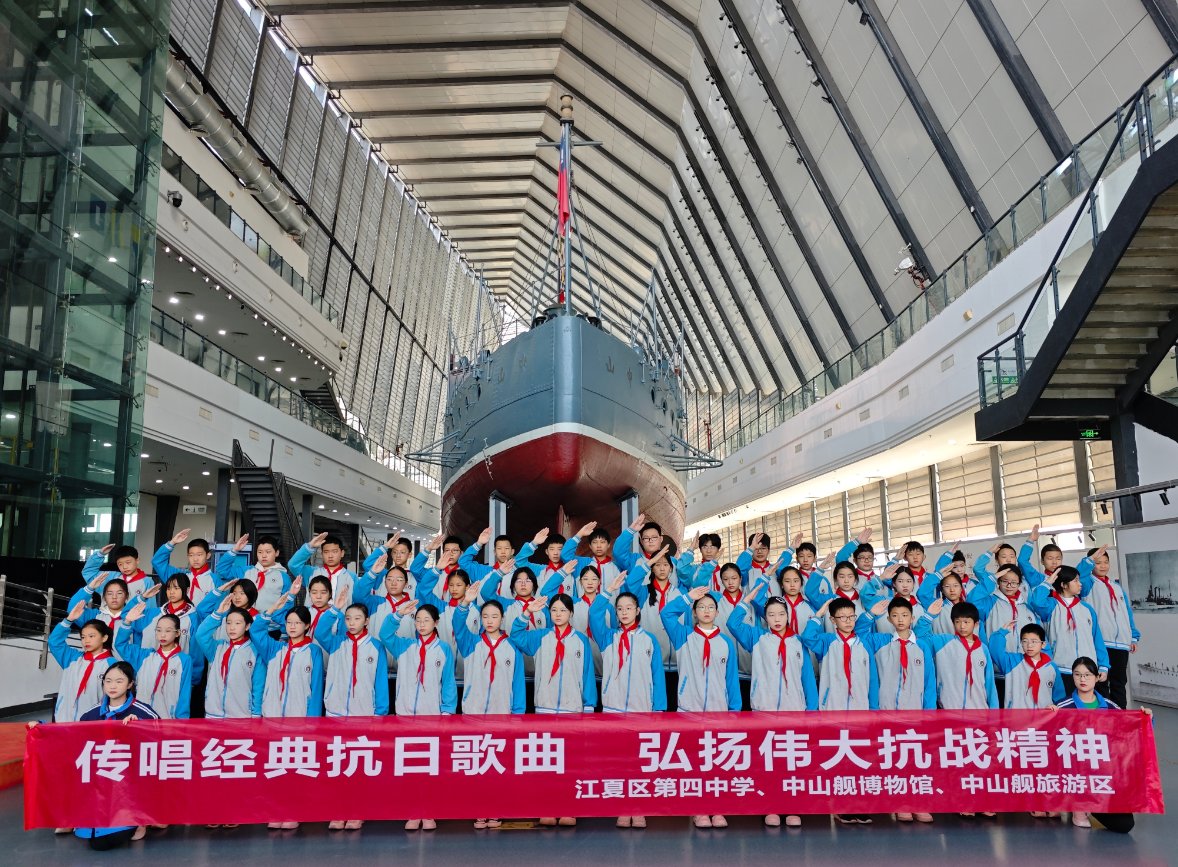 活動(dòng)于上午8時(shí)30分在中山艦艦體前正式啟幕。中山艦旅游區(qū)管理處講解員以艦體尾部“中山”二字的歷史淵源為切入點(diǎn),講述中山艦從訂購到參與抗戰(zhàn)的全歷程,專業(yè)解讀中融入文物背后的英雄故事;緊接著全體人員齊聲合唱《保衛(wèi)大武漢》《保衛(wèi)黃河》兩首抗戰(zhàn)經(jīng)典歌曲,伴隨著激昂的旋律,戰(zhàn)火紛飛的年代仿佛就在眼前,八十七年前中山艦官兵在武漢會(huì)戰(zhàn)中浴血奮戰(zhàn)的壯烈場景重現(xiàn)腦海。